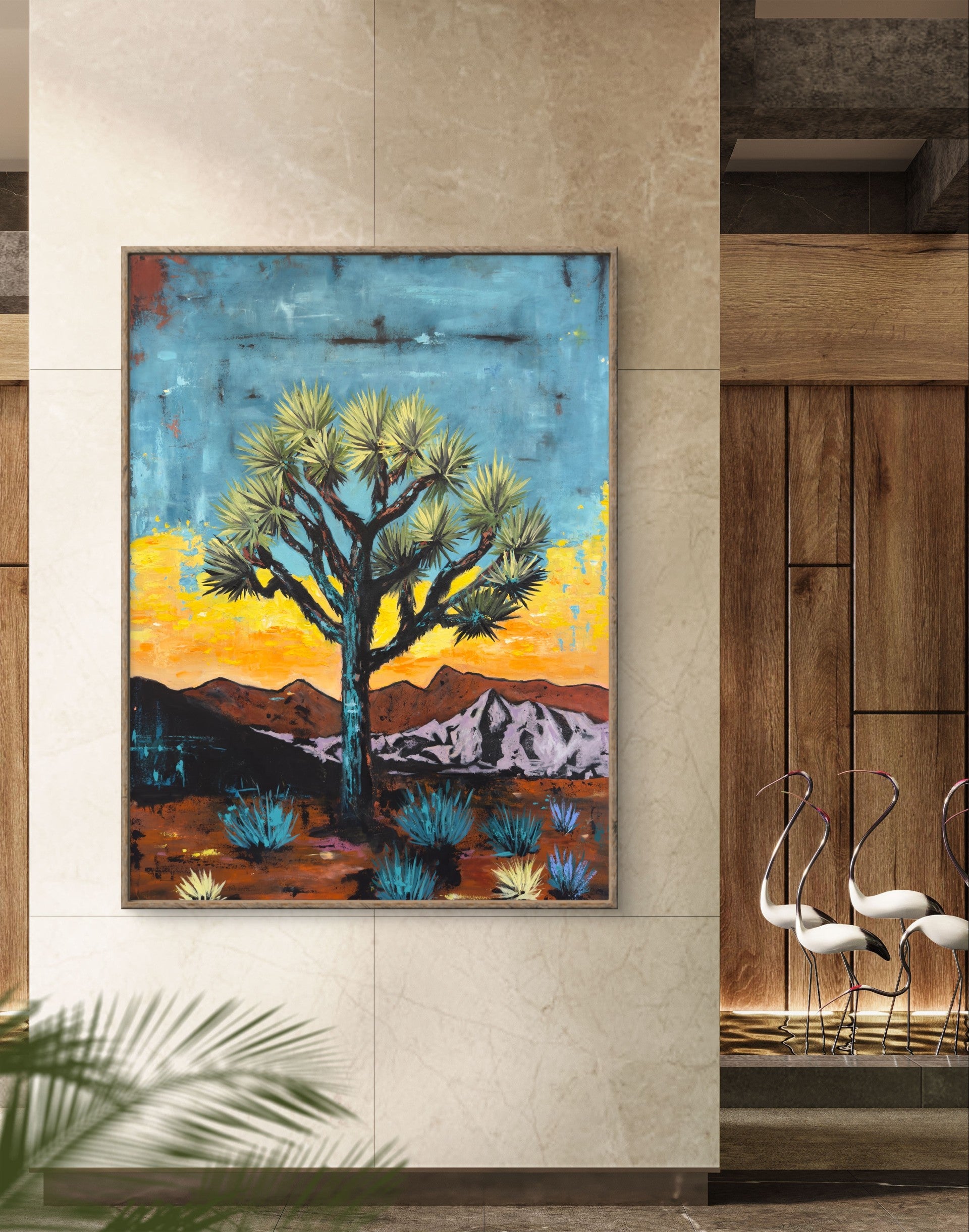 Thank you so much for the kind words! It was a real pleasure collaborating with you on this piece. I loved the challenge of blending the desert and forest elements in a way that felt vibrant yet harmonious, and I’m so glad it brings warmth and character to your space. Hearing that it turned out even better than imagined means the world to me. Thanks again for trusting me with your vision!