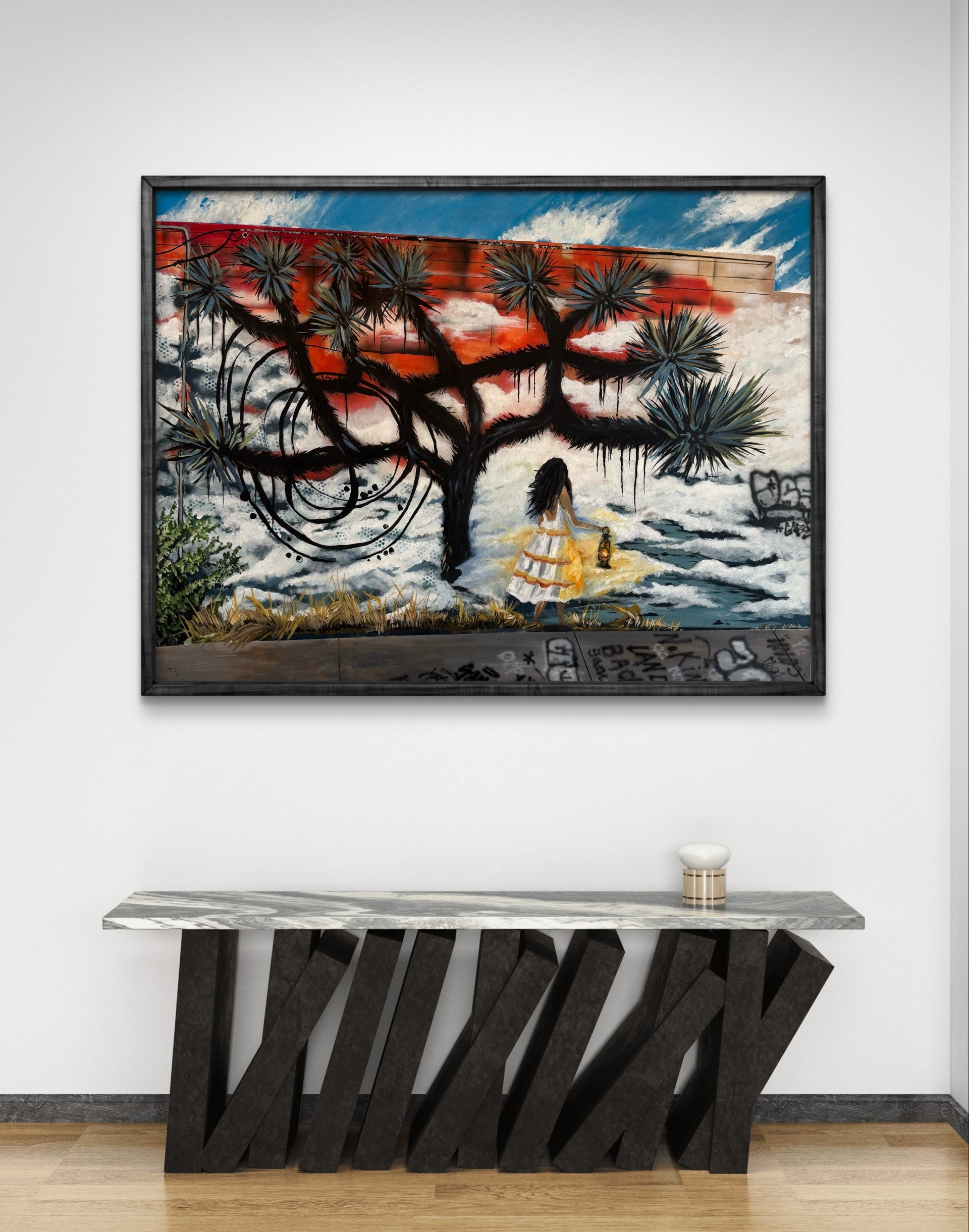 Mixed Media - Spray paint and brush collide in this desert-meets-city portrait of resilience.